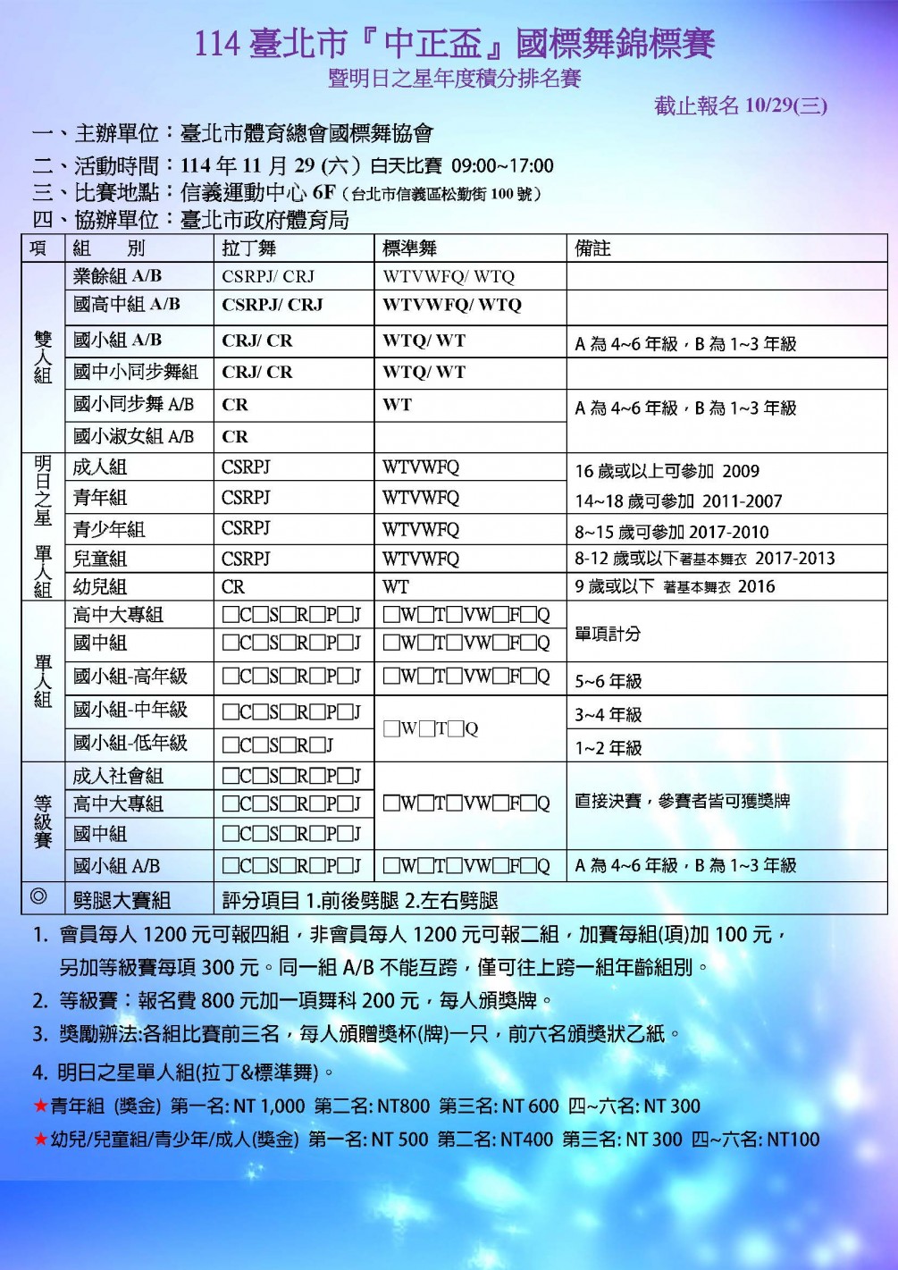 114臺北市中正盃國標舞錦標賽 開始報名~